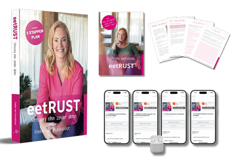 Het boek “eetRUST” geeft je inzicht in de onzichtbare veroorzakers van je eetgedrag en biedt je concrete, praktische handvatten om deze stap voor stap aan te pakken. Zonder strenge diëten of dat je moet ‘volhouden’ met al je wilskracht.